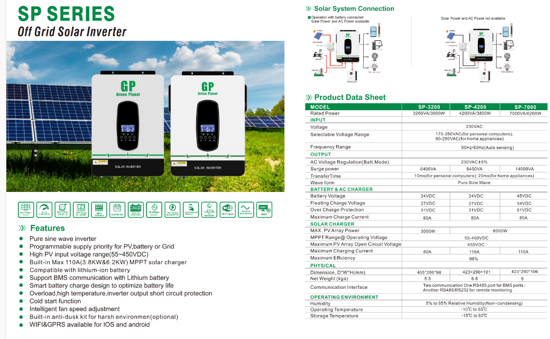 Model: GP Inverter SP-7000, rated power 6000W / 6KW